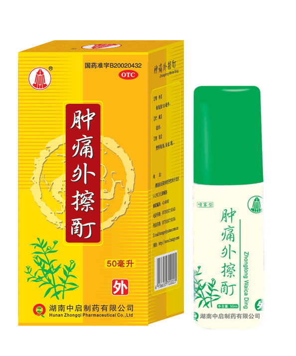腫痛外擦酊主要是由墨旱蓮、大黃、冰片、樟腦等純天然藥物經(jīng)過科學(xué)的方法制作而成。 方中君藥大黃味苦性寒,功能瀉熱毒,破積滯,行淤血,常以外用。臣藥墨旱蓮味甘酸性涼,功具“涼血養(yǎng)陰,退火消腫”(《分類草藥性》、《本草經(jīng)疏》)。佐藥冰片,辛苦性涼,功擅通壅塞,散郁火,消腫止痛,并以其辛香走竄之氣,助君臣二藥通透肌膚,直達(dá)病所而迅速發(fā)揮作用;樟腦味辛性熱,方中用量少,以其味辛,能助冰片之透達(dá),以其性熱并可協(xié)調(diào)諸藥,防前藥之過于寒涼而凝滯氣血為使藥。全方組合具有清熱解毒,活血和營、消腫止痛之功效。本方擇藥精當(dāng),以酊劑外用,使藥力直達(dá)藥所,見效快,使用方便。